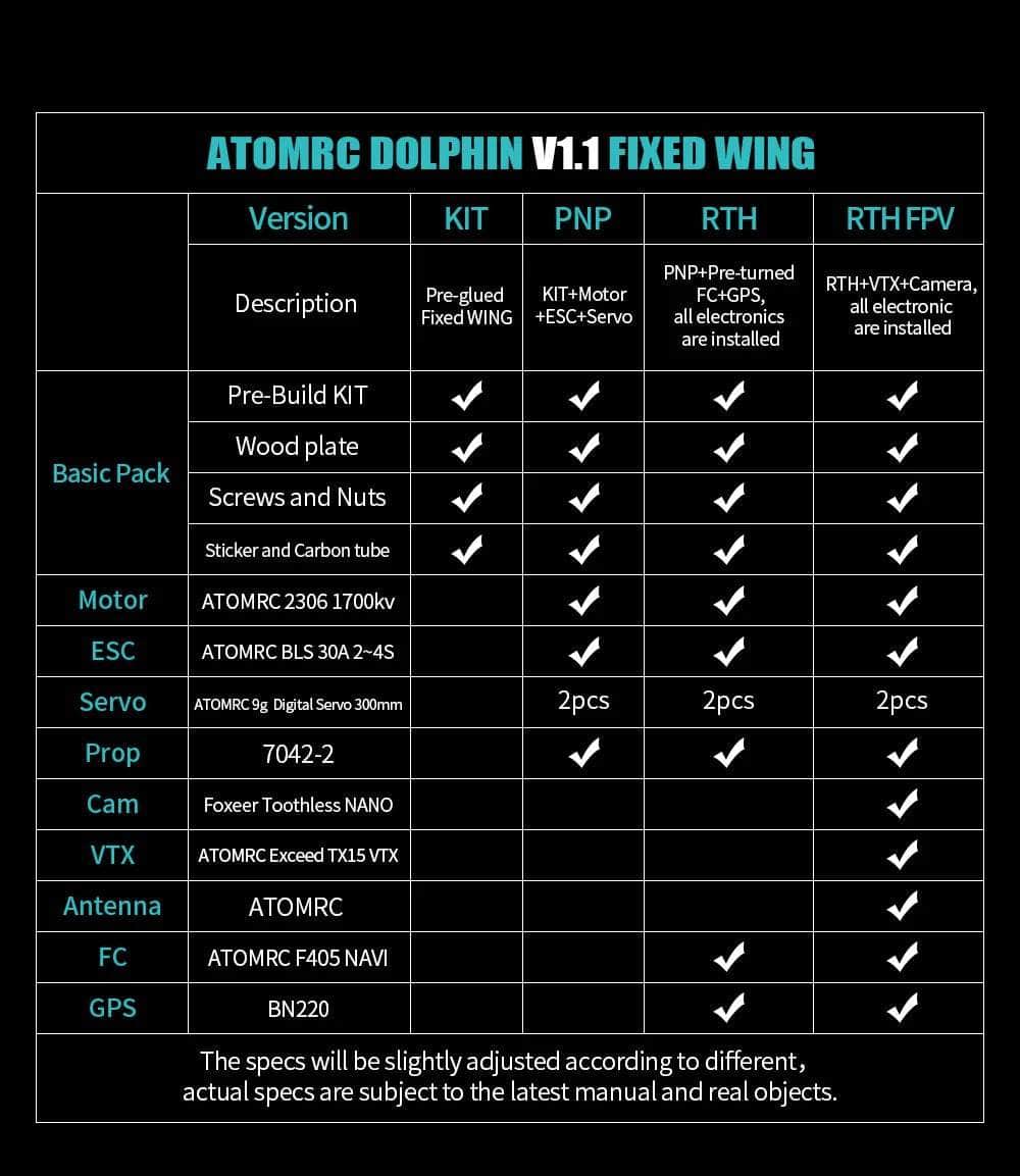 - 1x AtomRC RTH Dolphin V1.1 FPV Fixed Wing - Black/White