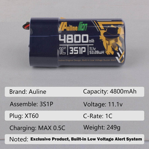 - 1x Auline 11.1V 3S 4800mAh 1C Li-Ion Battery - XT60