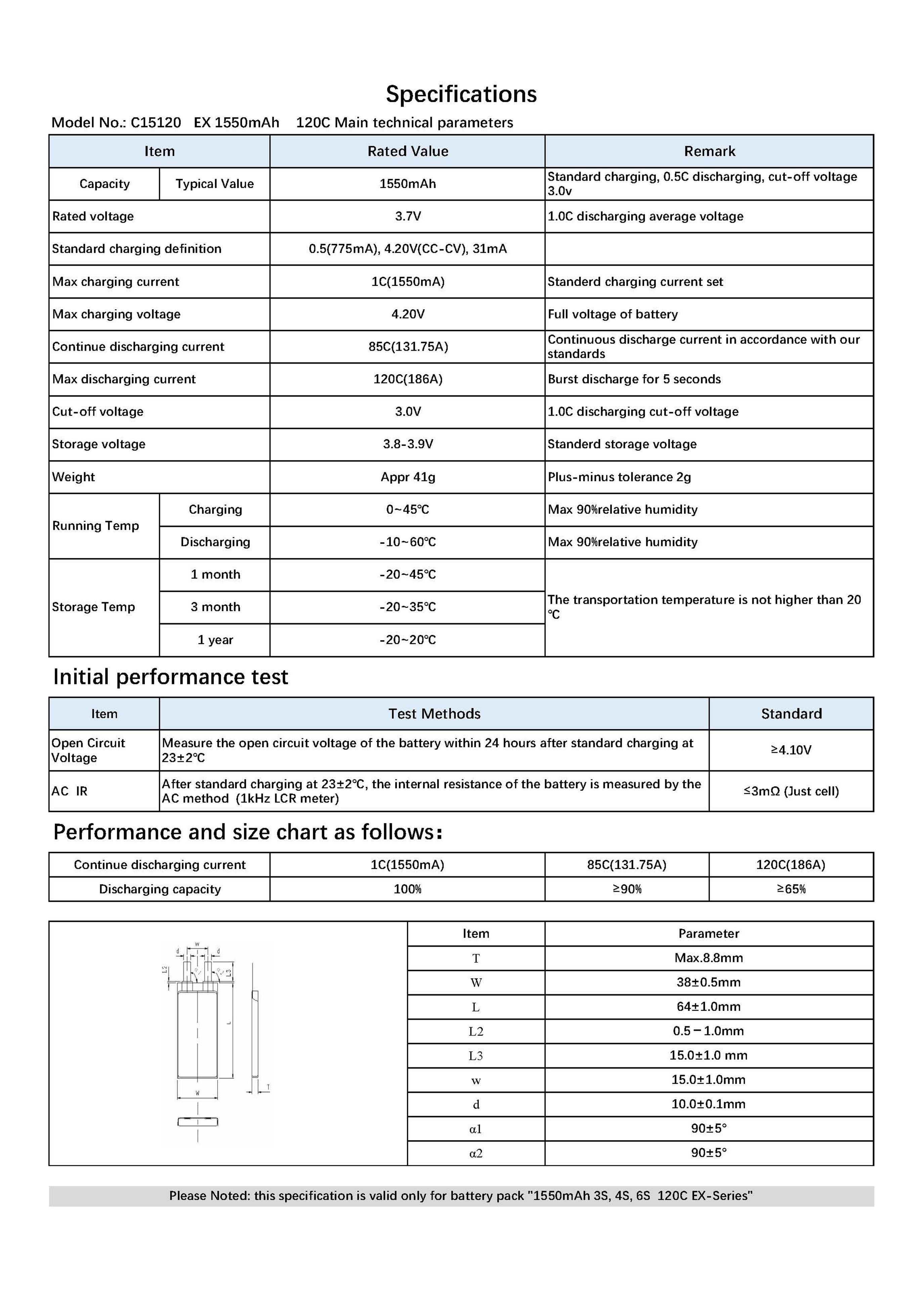 - 1x Auline EX 14.8V 4S 1550mAh 120C LiPo Battery - XT60