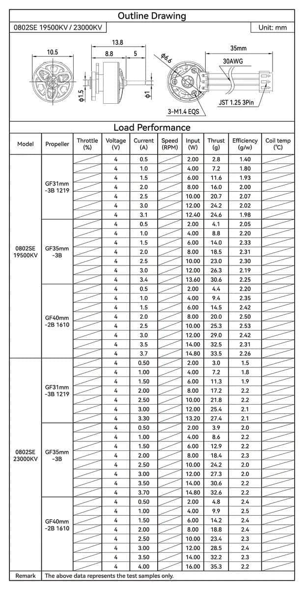 - 19500KV and 23000KV options greatly meet the pilots' needs for different flying purposes.
