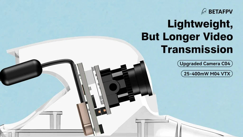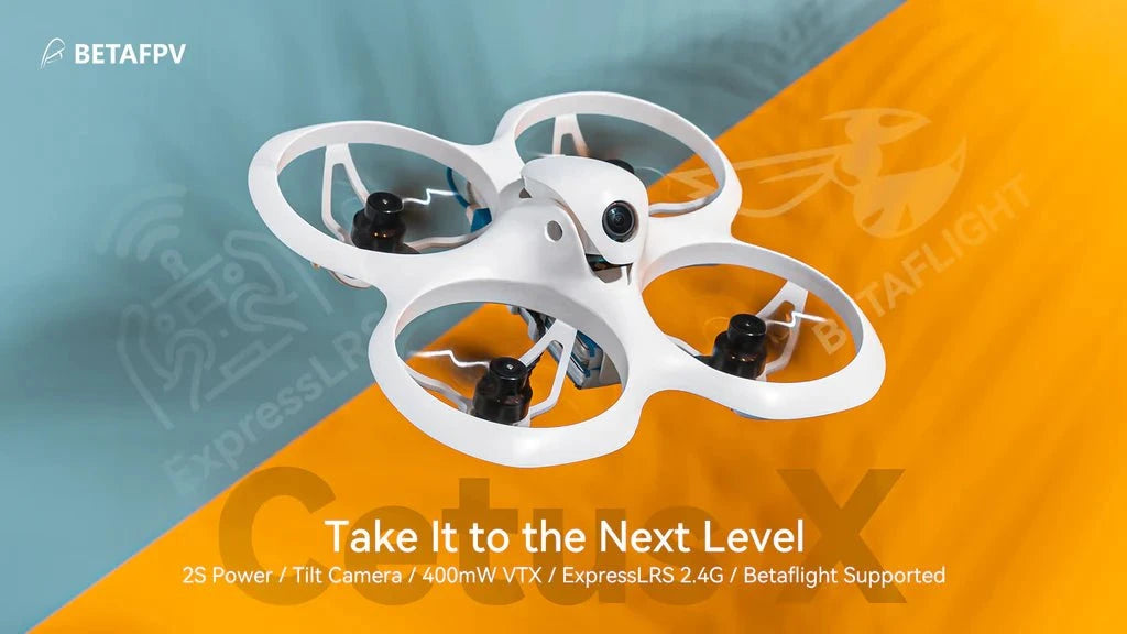 - Featuring M04 400mW VTX, C04 FPV camera (based on Caddx Nano Ant Camera or Runcam Nano 4), and 2xBT2.0 450mAh 1S 30C battery for longer radio and video transmission and flight endurance, Cetus X brushless quadcopter allows beginners to gain more achievements in FPV flight.