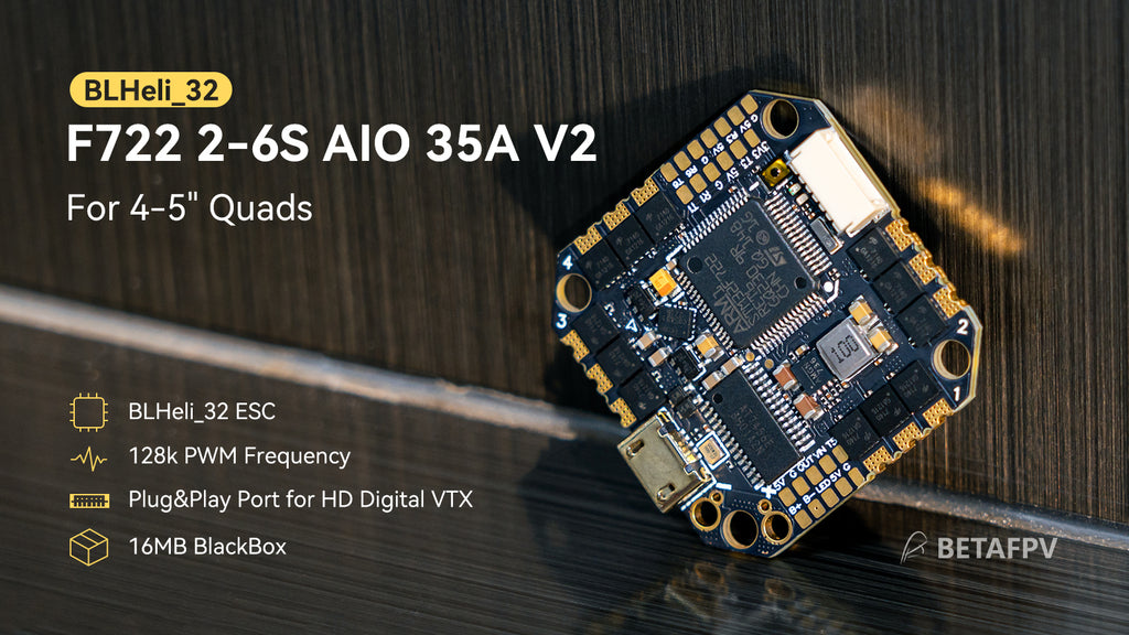 - It can handle 35A continuous current (40A burst), supports the 2-6S lipo battery, and gives the drone a more robust flight performance.