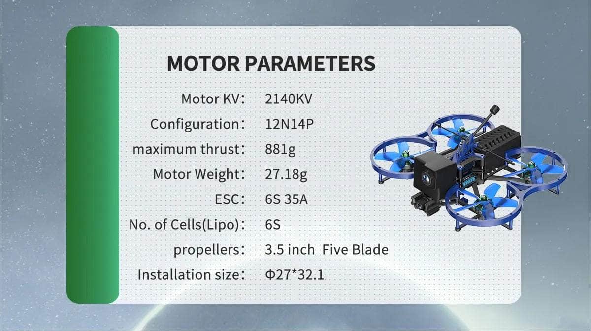 - 1x BrotherHobby R3.5 2205 2140Kv Brushless Motor