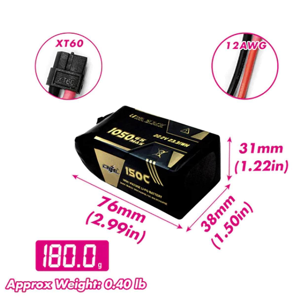 Elevate your drone game with this CNHL Ultra Black Series 22.2V 6S 1050mAh 150C LiPo Battery-XT60. It features a superior power and lightweight design for a fast, reliable flight experience. - Enjoy the thrill of a 150C discharge rate!