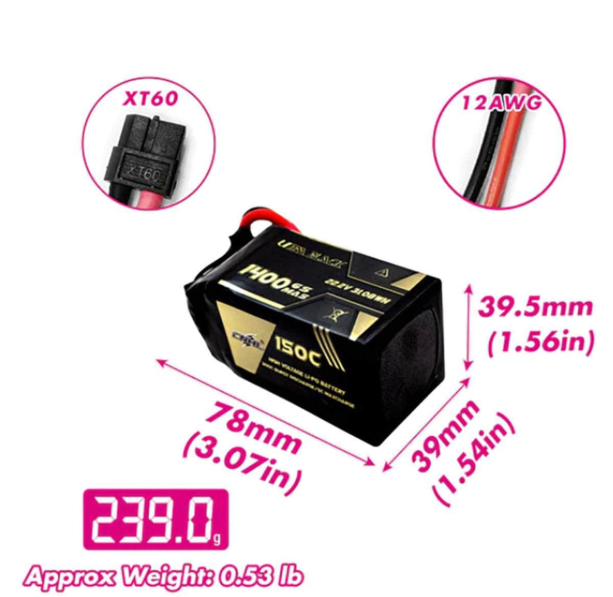Elevate your drone game with this CNHL Ultra Black Series 22.2V 6S 1400mAh 150C LiPo Battery-XT60. It features a superior power and lightweight design for a fast, reliable flight experience. - Enjoy the thrill of a 150C discharge rate!