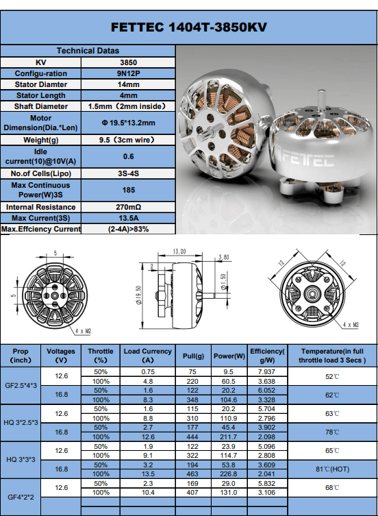 - 1x FETtec FM1404T 1404 3850Kv Micro Motor - Silver