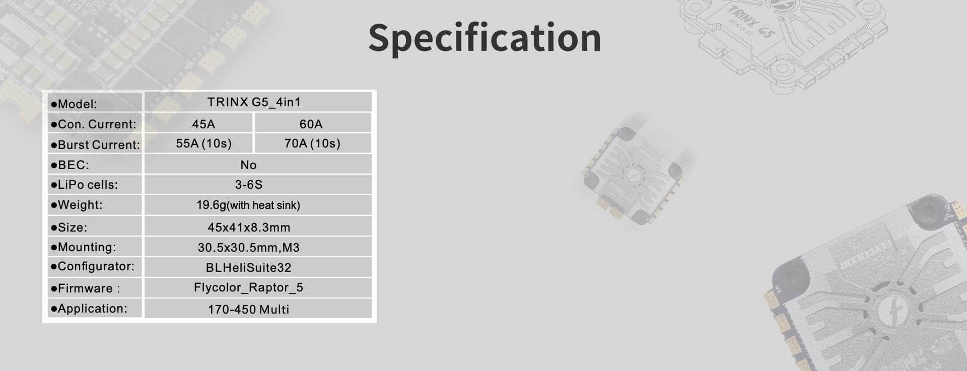 - Flycolor Trinx G5 32bit 45A 3-6S 30x30 4in1 ESC