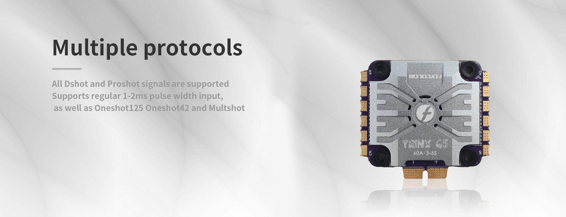 - Multiple Protocols, where all Dshot and Proshot signals are supported