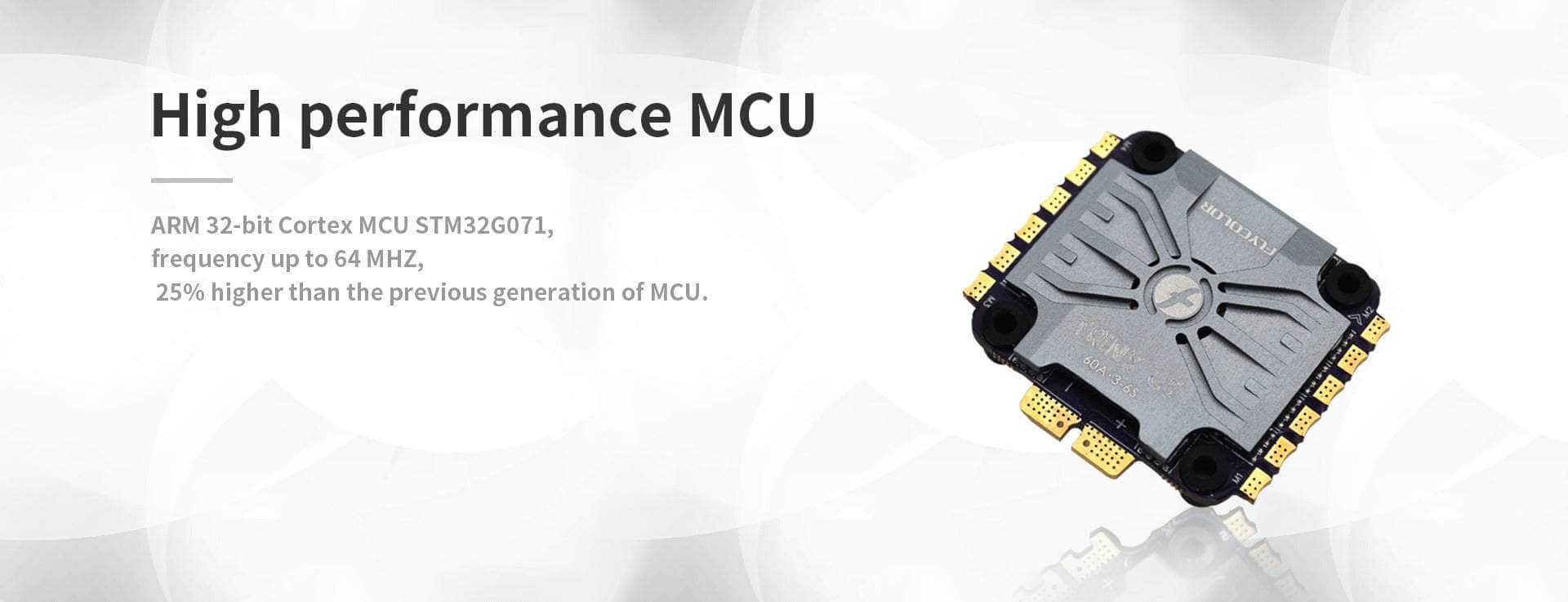 - ARM 32-bit Cortex MCU STM32G071, with a frequency up to 64 MHZ, where that's 25% higher than the previous generation of MCU.