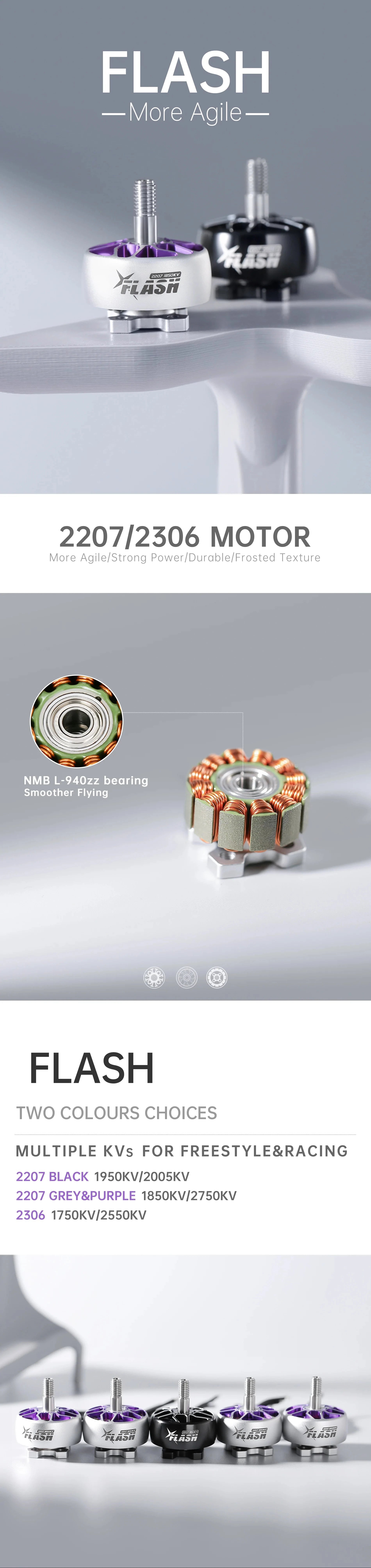 The FlyFishRC Flash 2207 Motor uses the Uni-Bell structure design providing high crash resistance while not adding more weight, providing high reliability and explosive power and thrust for FPV pilots at an affordable price.