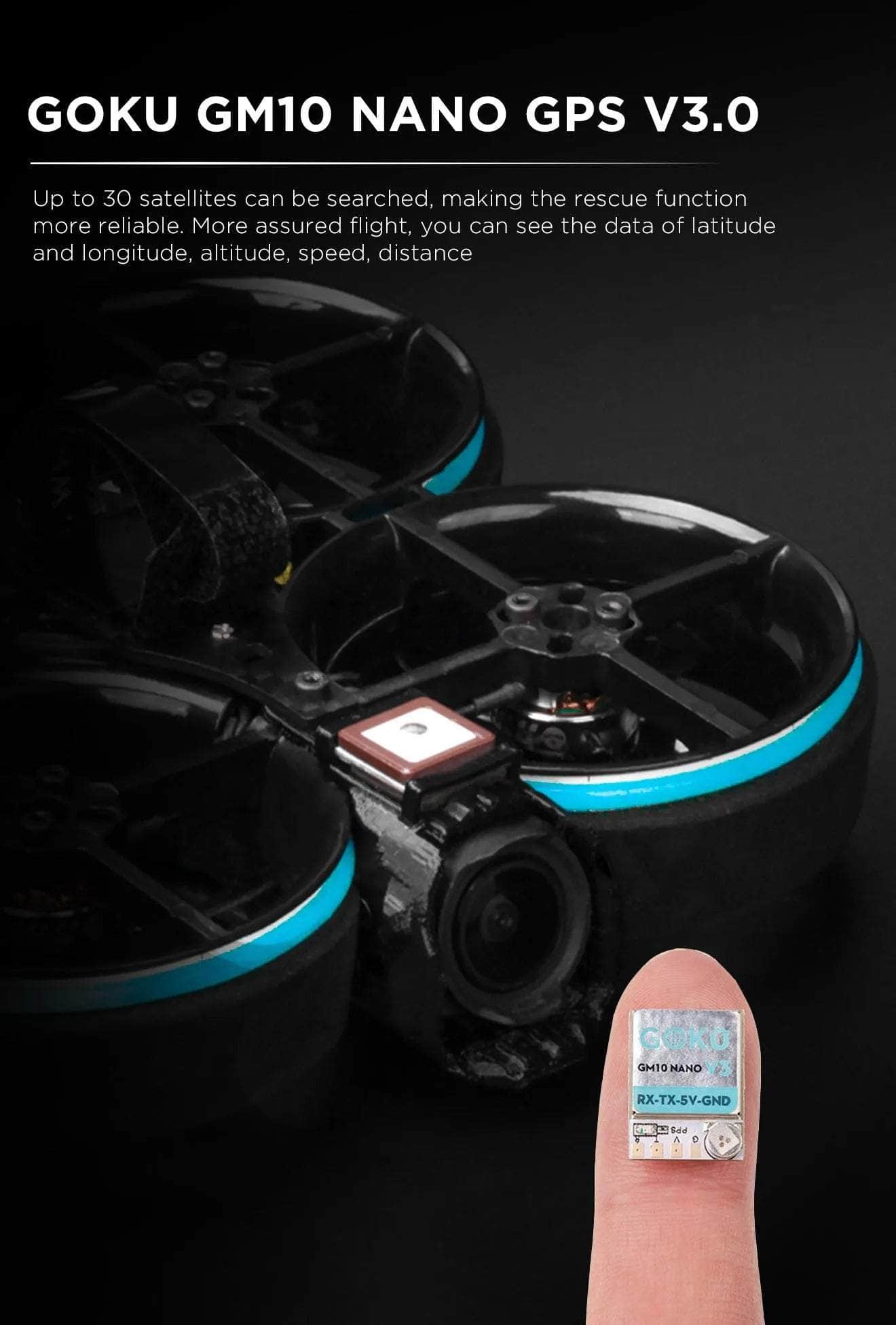 The CineRace is a double duct design, not a simple guard anymore. It can fly as flexibly as a racing drone, and as stable as Cinewhoop. All in all, this is a drone that can not only race but also capture stable videos and at the same time achieve a super long flight time! A specially designed GM10 Nano V3 GPS module is tailored to fit the CineRace20, providing minimal weight but the ability to search up to 30 satellites. You will see on the front of the quad Flywoo engineer the use of the soft TPU material to mount the camera to prevent the jello effect, by reducing the over all vibrations in the quad.