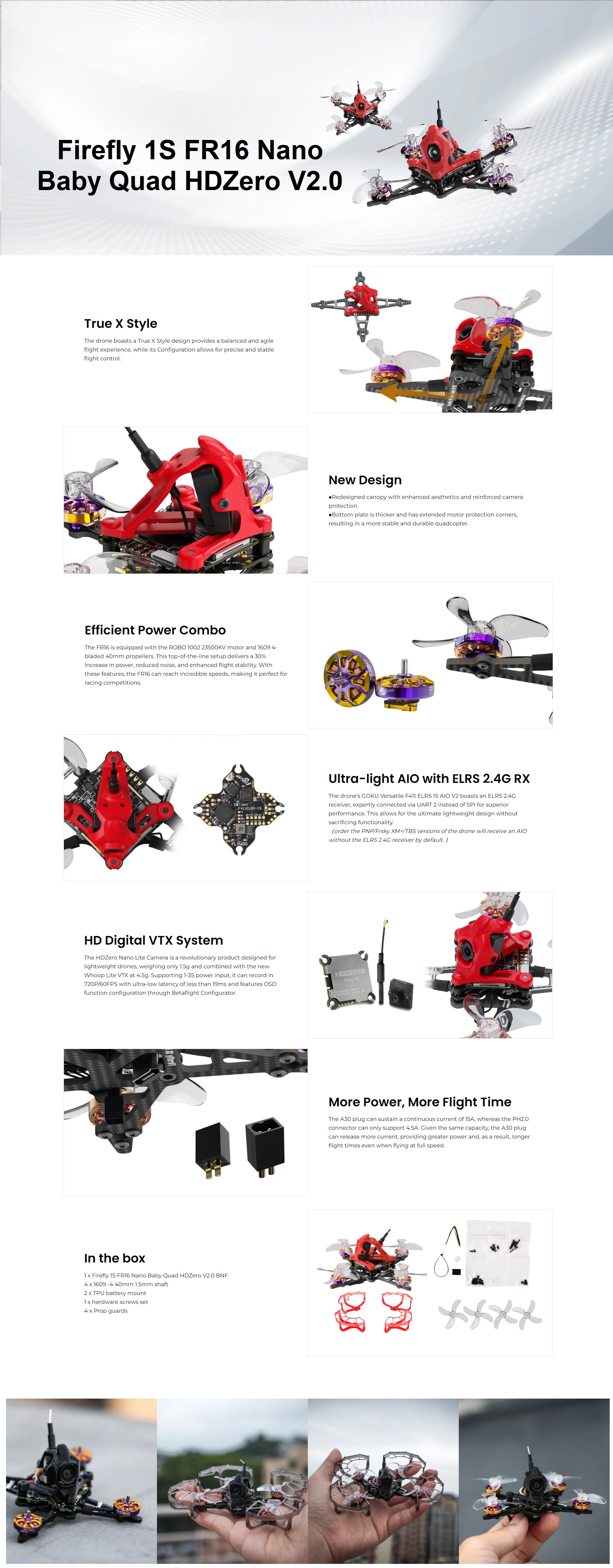 - 1x Flywoo BNF Firefly FR16 Nano Baby HD V2.0 1S 1.6' Micro Quad w/ HDZero Whoop Lite & Nano Lite Cam - ELRS 2.4 GHz