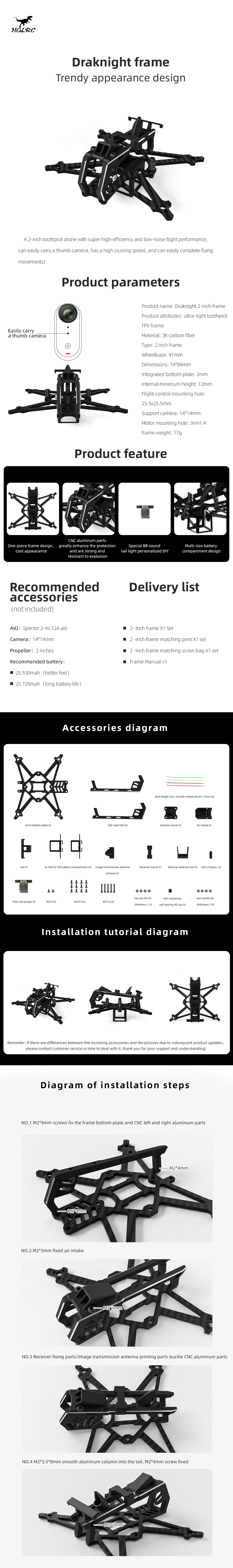 - 1x HGLRC Draknight 2' Micro Frame Kit