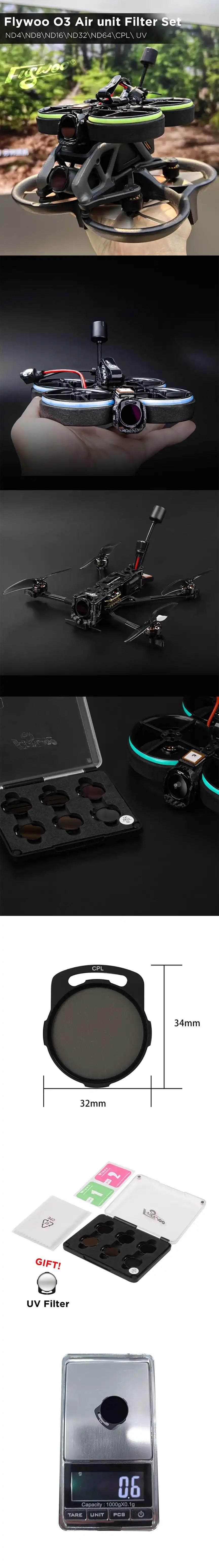 - Flywoo DJI O3 Air Unit Filters Set (7PCS) - ND 4/8/16/32/64 + CPL + UV
