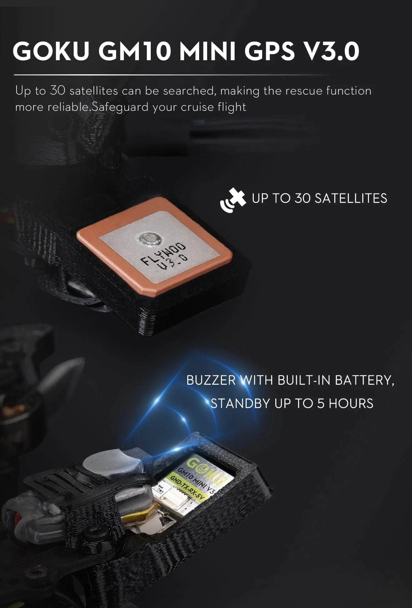 The V3.0 GPS allows for up to 30 satellites to be searched, making the rescue function more reliable. Safeguard your cruise flight with a built-in buzzer and up to 5 hours of standby.
