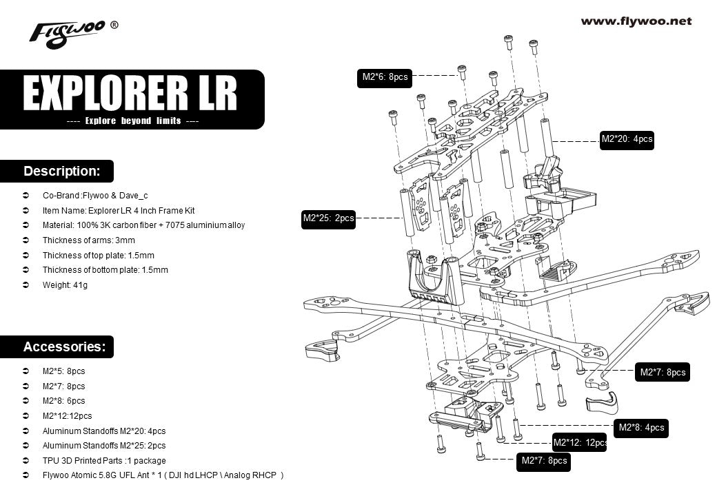 - 1x Flywoo Explorer LR 4' Walksnail Long Range Frame kit