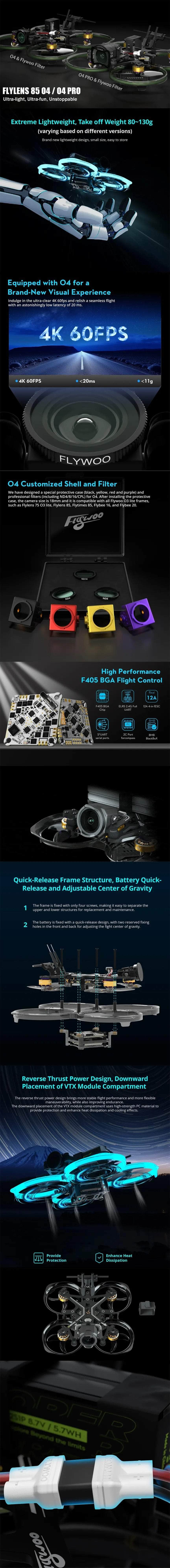 The FLYLENS 85 Drone is an exciting little drone. Meticulously crafted to comply with international regulations. The FlyLens 85 features DJI O4 air unit, making it the lightest 2-inch O4 drone on the market. The carbon fiber frame has a special post-cutting treatment. The reverse-push propeller structure enhances power, reduces noise, and is the perfect entry level or professional 2' cinewhoop.