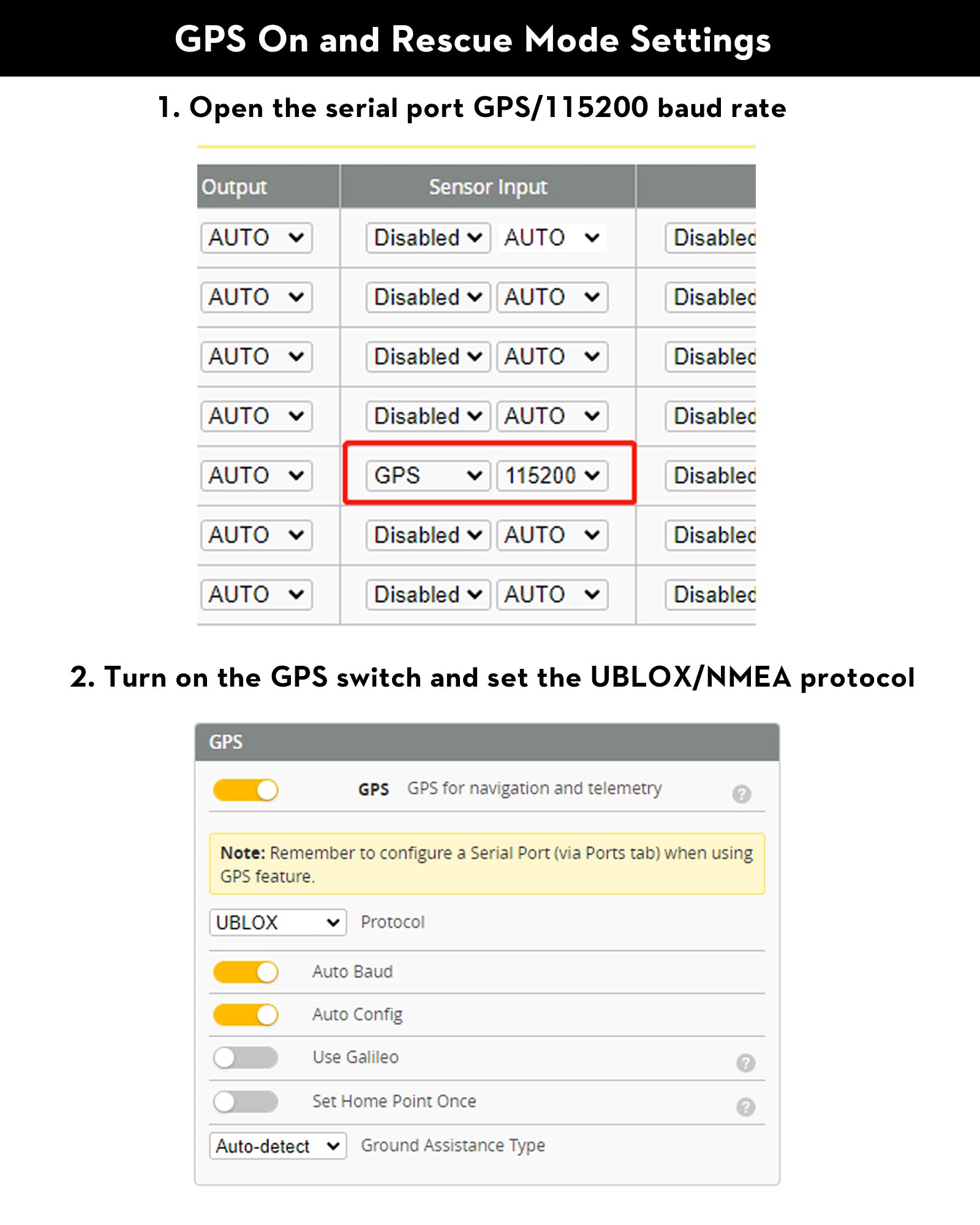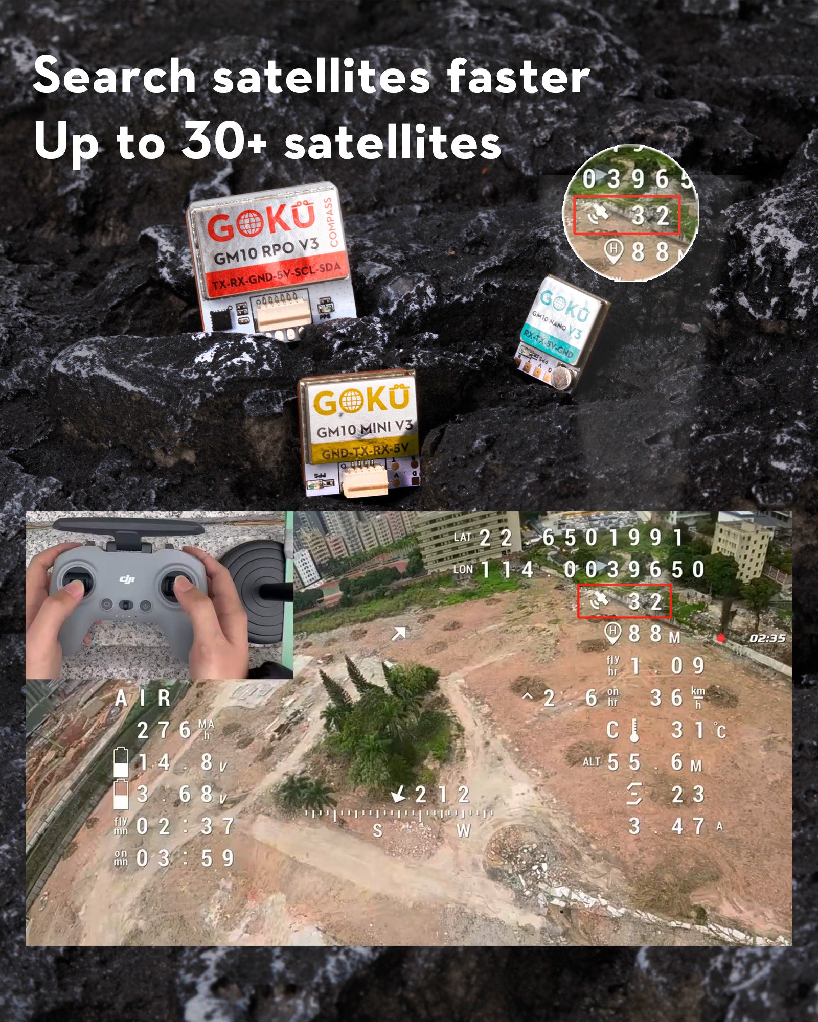 Note: The chip of GOKU GM10 V3 GPS is M1005. Only BF4.3x version firmware can use Ublox protocol. BF4.2x and earlier firmware can only use NMEA protocol But there is no difference in performance between the two protocols