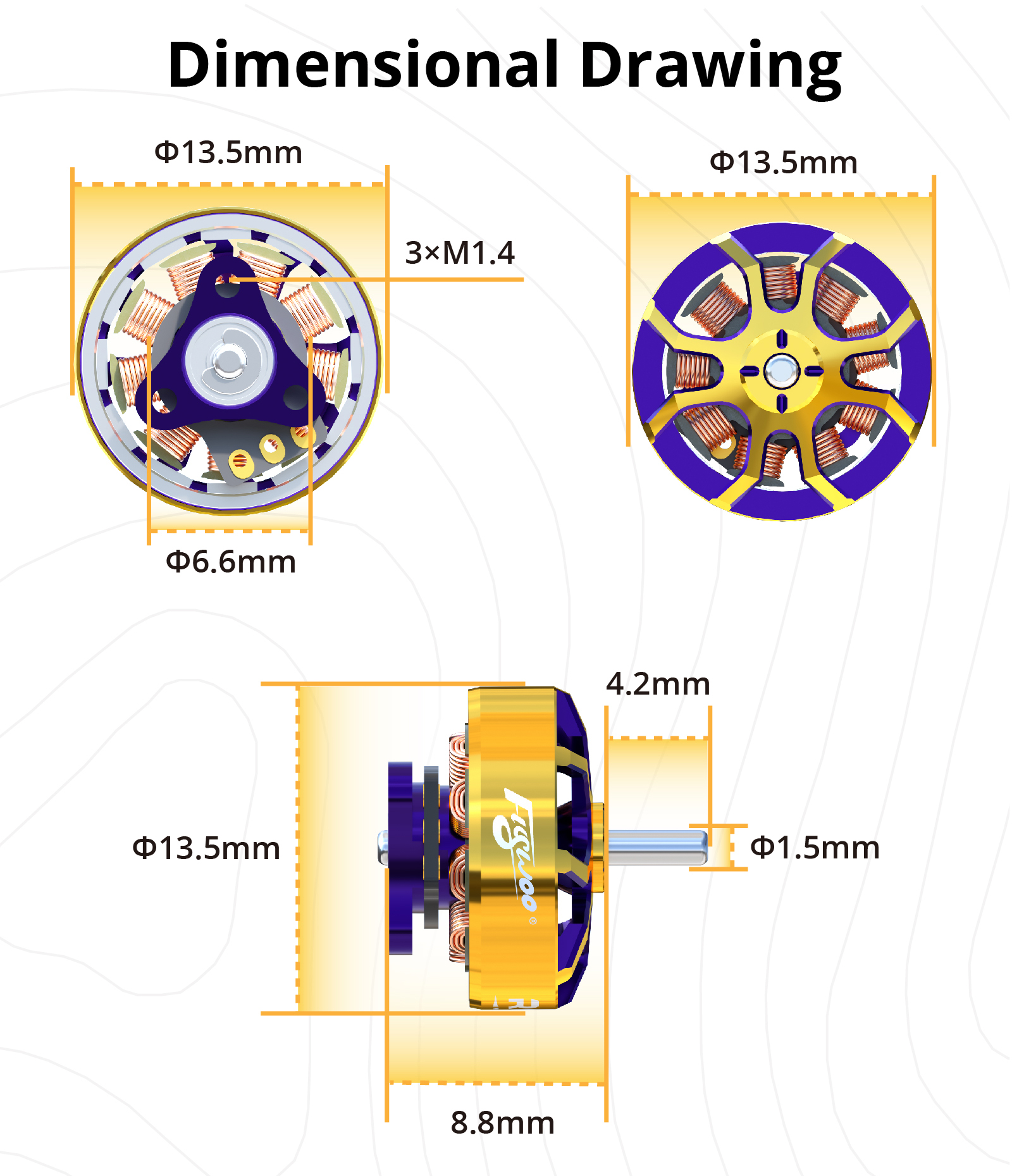 - 1x Flywoo Robo 1003 14,800Kv Micro Motor - Gold/Purple