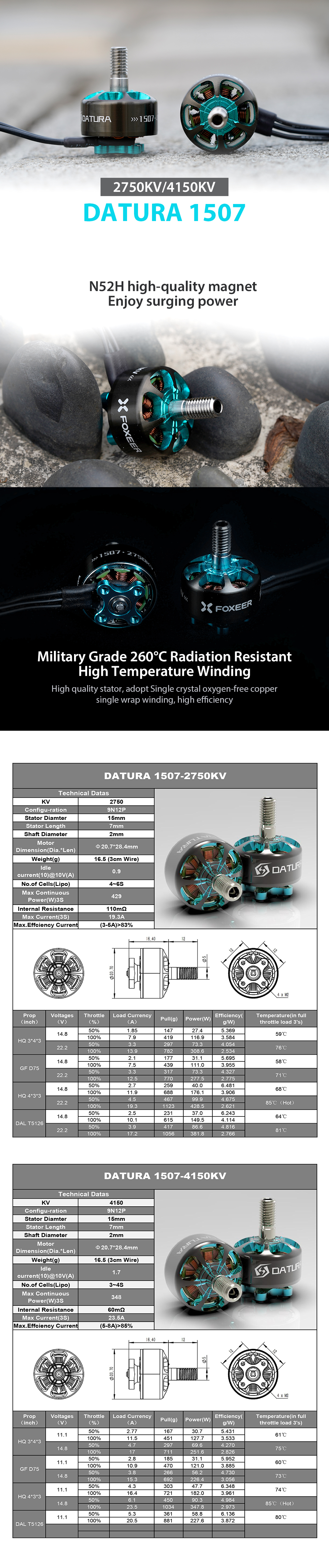 The Foxeer Datura 1507 2750Kv Micro Motor offers high quality N52H magnets, and military grade 260 degree Celsius radiation resistant windings. Its unique rubber dampener ring reduces vibration and shock for smoother flying and improved stability. Get optimal performance and longevity out of this powerful motor.