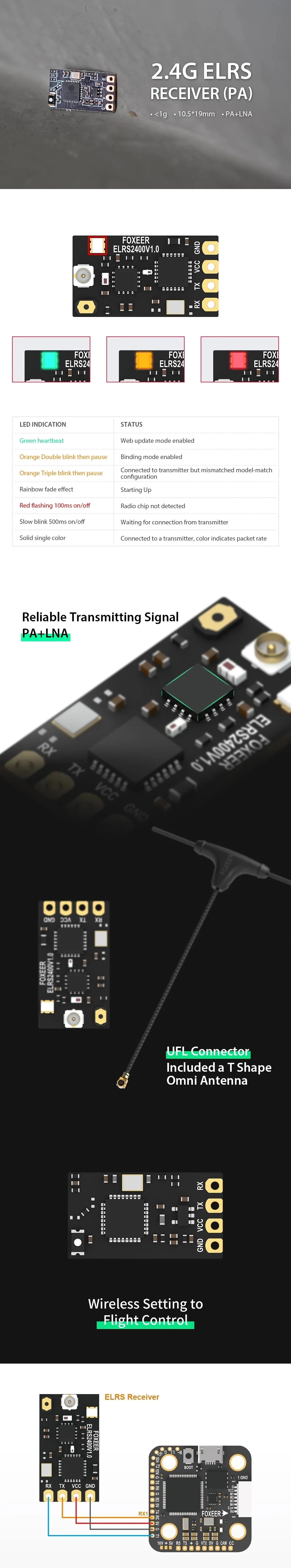 - 1x Foxeer ELRS Lite 2.4GHz Receiver - T Antenna
