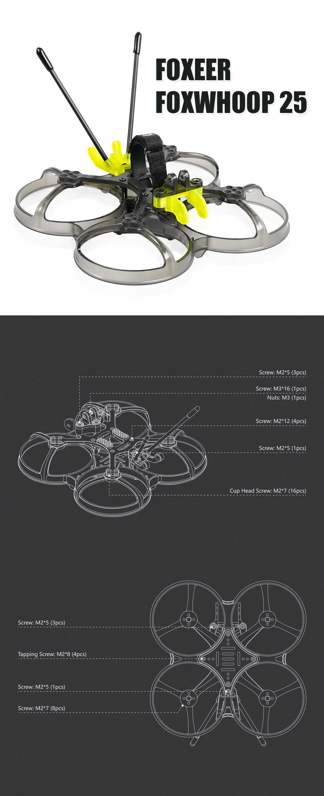 - 1x Foxeer Foxwhoop 25 2.5' Unbreakable Frame Kit