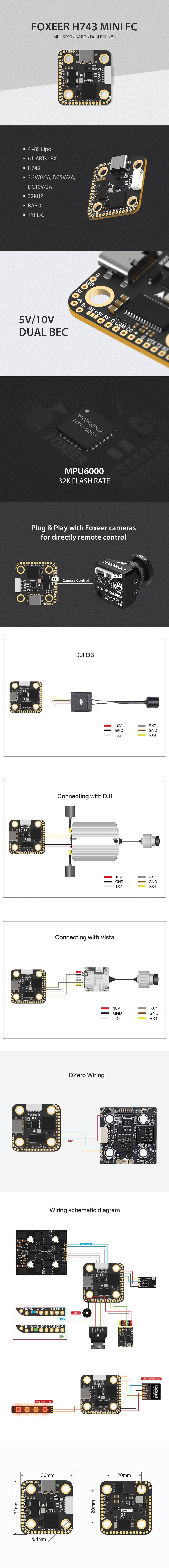 - 1x Foxeer H743 Mini X8 4-8S 20x20 Dual BEC Barometer Flight Controller - MPU6000