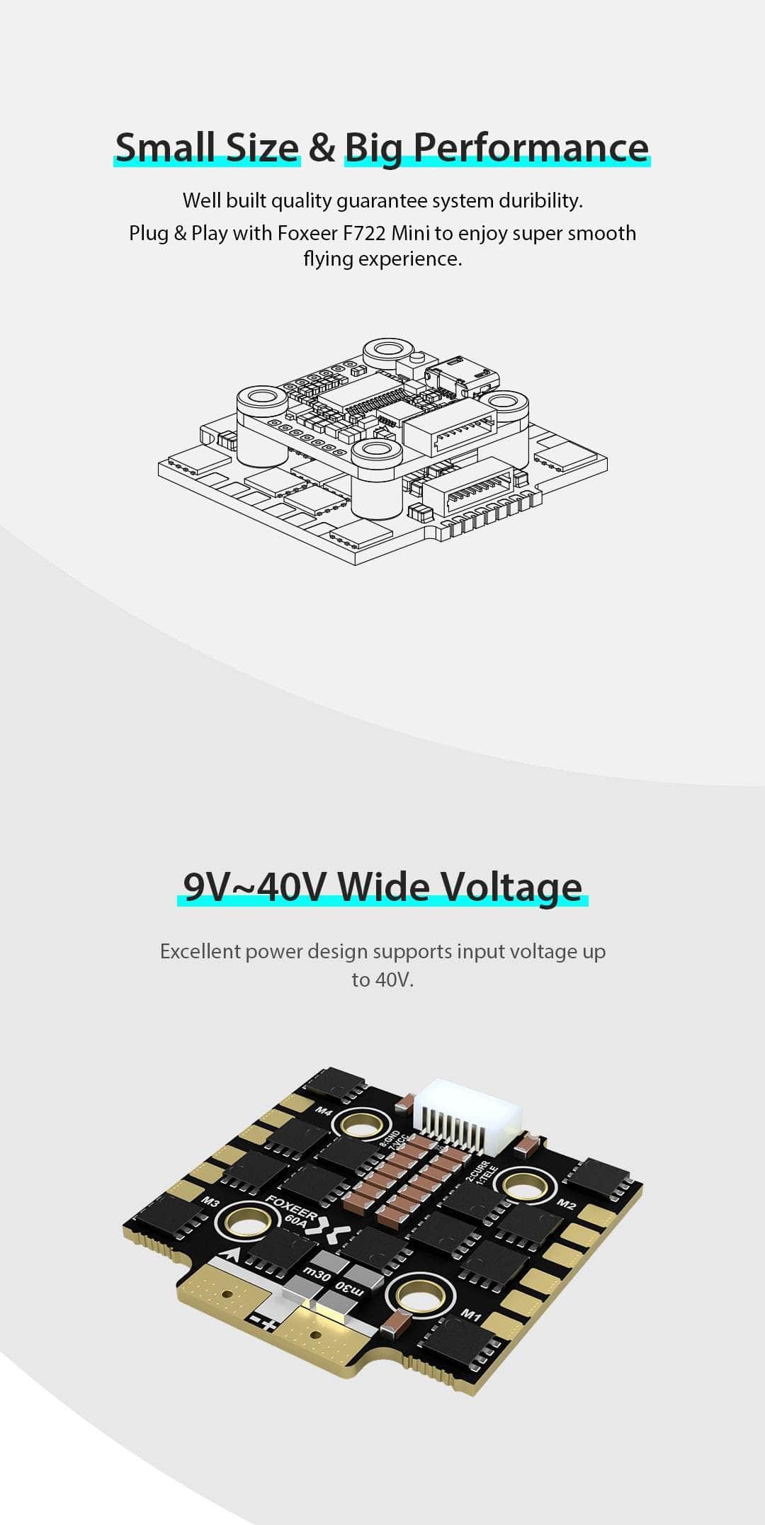 We've come to expect the best out of Foxeer and the Foxeer Reaper series is their flagship series with high-quality electronics. The Foxeer Reaper F4 Mini ESC is precisely what we come to expect out of our ESCs. Fewer desyncs thanks to the powerful F4 chip. Bigger, high-quality MOSFETs, super smooth flights and supports input voltage up to 40V. It's no wonder why Foxeer is a leader in the industry with their excellent Reaper series.