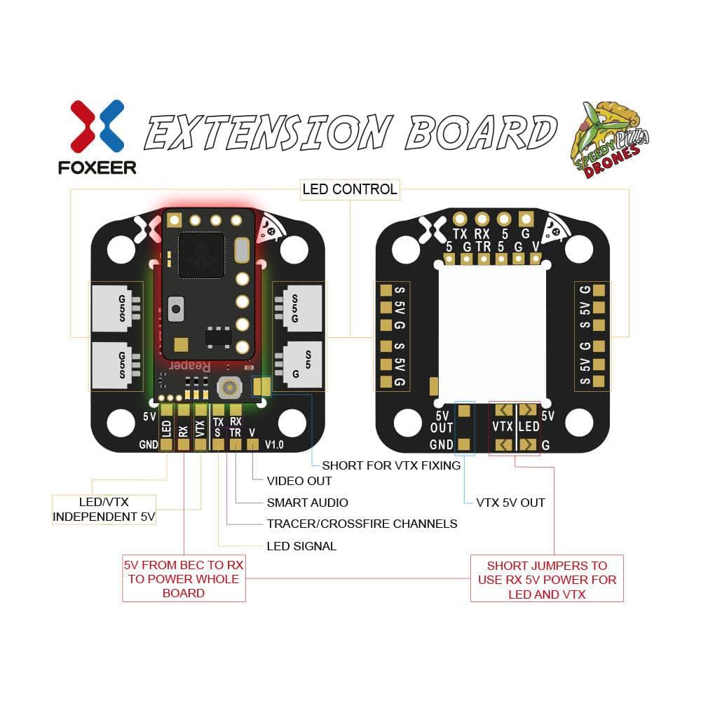 Fit your Reaper Nano VTX to a 20x20 mounting point and take full control over your LEDs with this Foxeer Reaper Nano 20x20 VTX Extension Board!