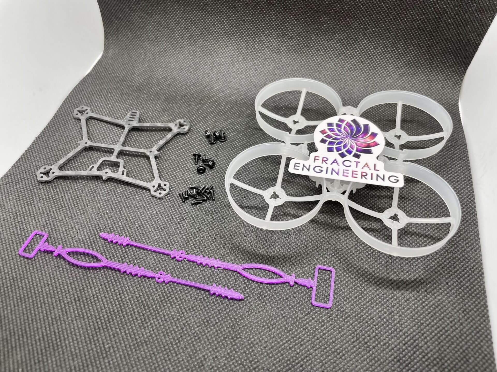 Are you a whoop racer seeking the best performance with no reliability sacrifice? An FPV pilot wanting a solid frame with fast maintenance? Or after a tough frame to keep you airborne, instead of flimsy nylon frames? If you answer yes to any of those, then the Fractal 75 was designed for you! This kit contains all you need to construct your craft - it's compatible with most parts and has a 25.5x25.5mm mount for the AIO and motor mounts for 3xM1.4x6.6mm and 3xM1.6x5.5.