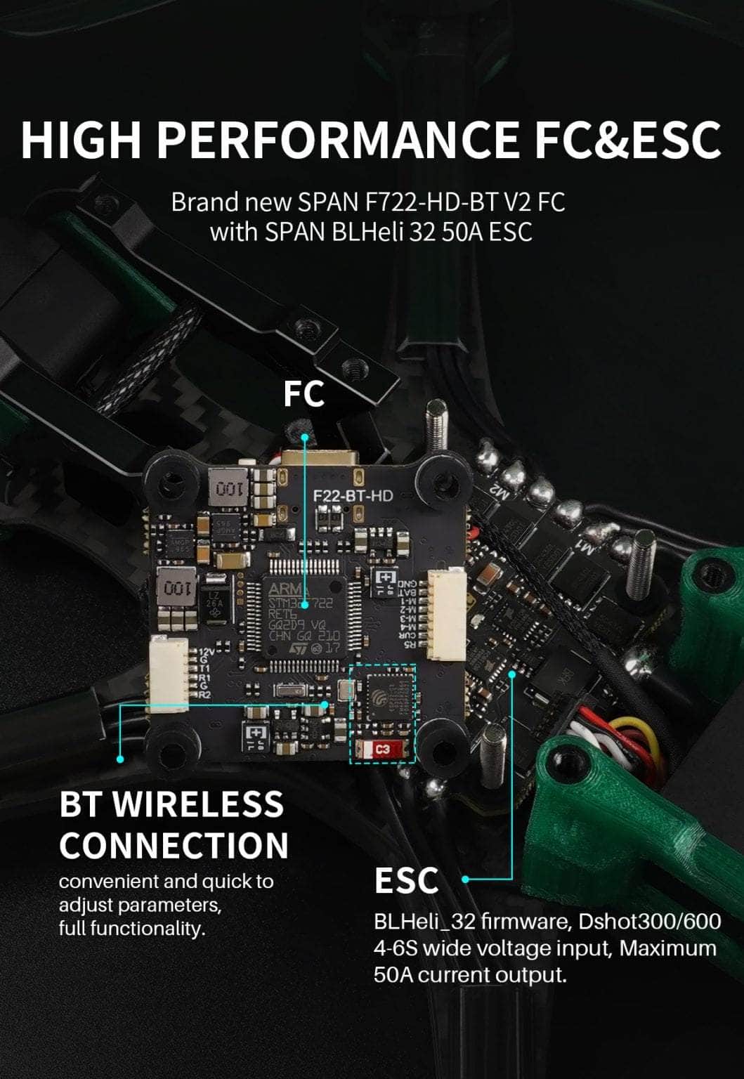 - SPAN G50A BLHeli_32 4in1 50A ESC with the latest GEPRC 2107.5 motor, with strong power, fast response speed, precise throttle control, and smooth flight experience