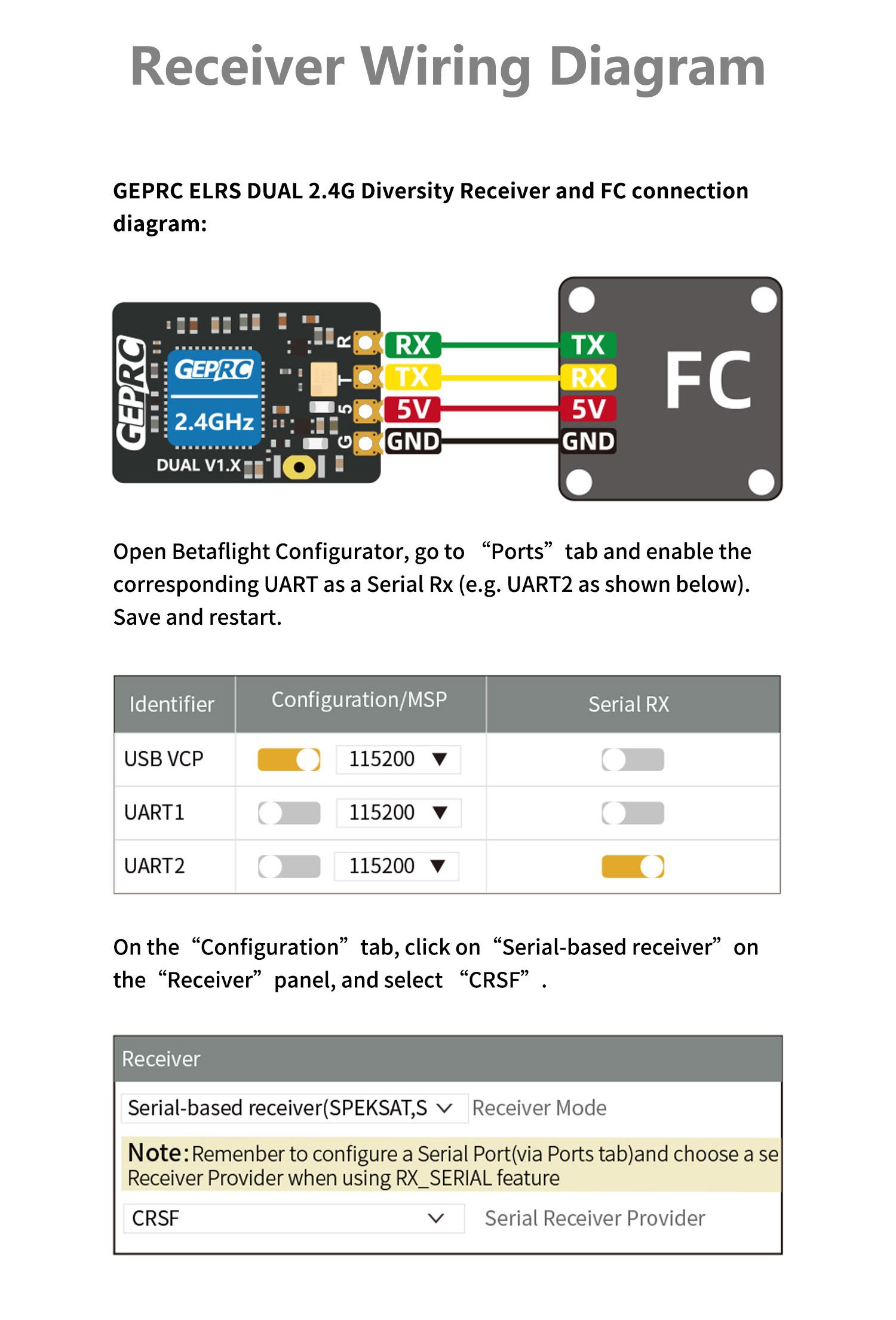 - 1x GEPRC ELRS 2.4GHz Dual RX Diversity Receiver