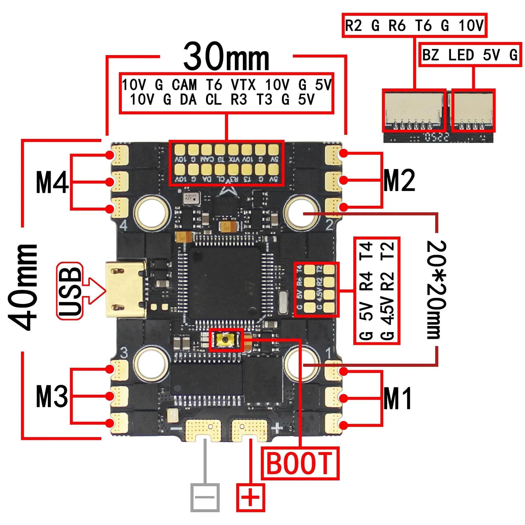 - 1x HAKRC F7220 2-6S AIO Whoop/Toothpick Flight Controller w/ 40A 5V/3A & 10V/2.5A BEC