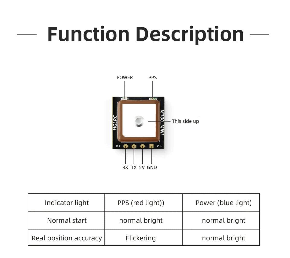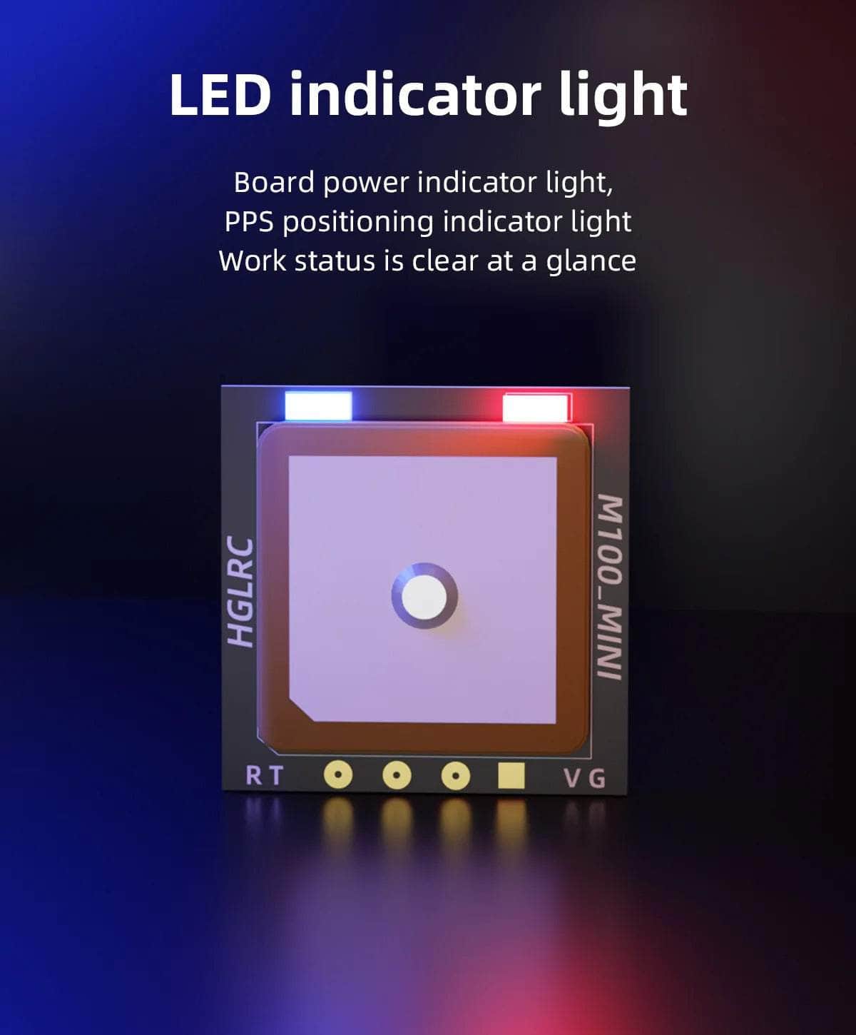 From the laboratory from HGLRC, their team has design the GPS to take to less than 1 minute for it to reach the 8 satellites required for take-off. At the same time, it supports receiving GPS, Galileo, and BDS three satellite signals, allowing you to locate in any area quickly. The HGLRC designers of this mini GPS harbors consideration for ease of use. With the onboard LED indicators, including the power indicator and positioning PPS indicator, so that you can know the working status of GPS well.
