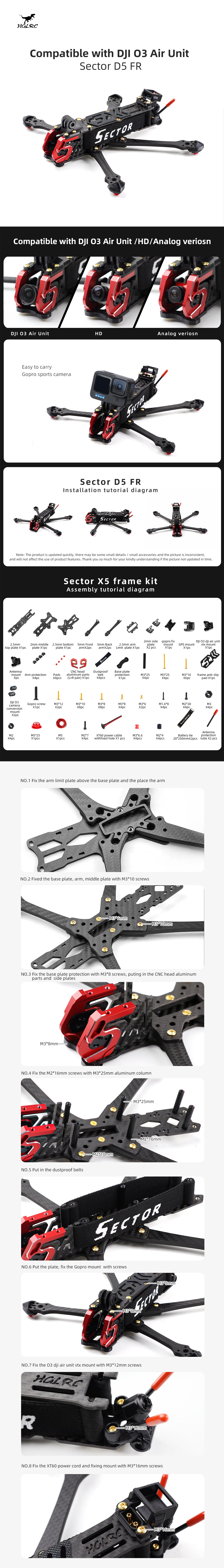 - The Sector D5 optimized body aluminum parts for DJI O3 VTX. The lens is fixed by the print to effectively reduce low-frequency vibration, enhance shooting stability and reduce in-flight video jelly.