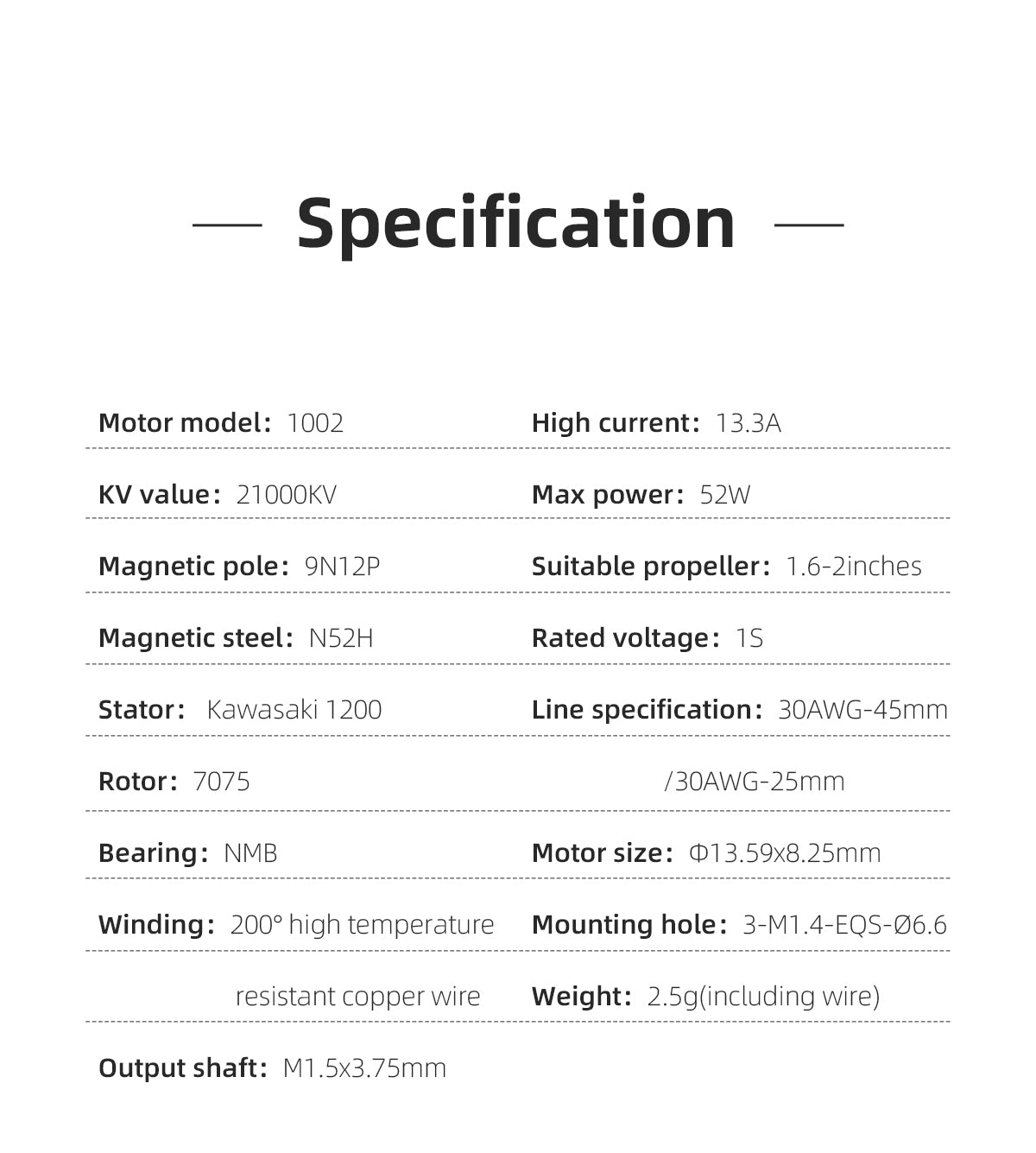 - 1x HGLRC SPECTER 1002 21000Kv Motor