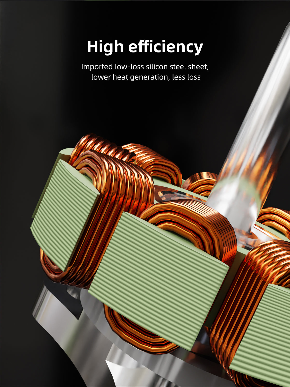 - Super high temperature resistant 200° copper wire winding, the motor runs more stably