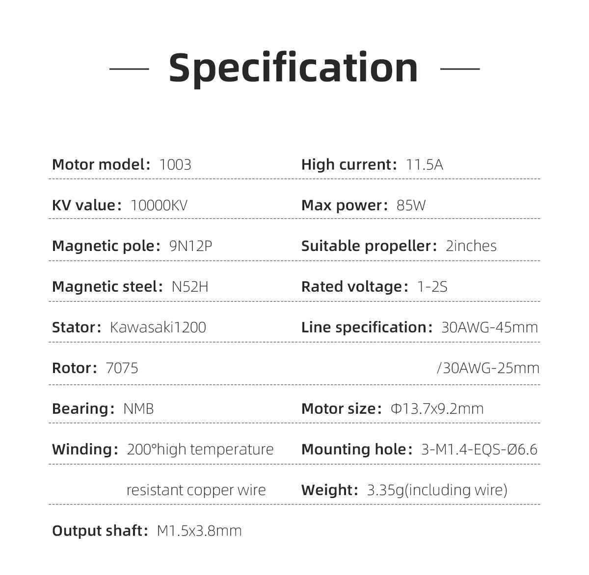 - 1x HGLRC SPECTER 1003 10000Kv Micro Motor
