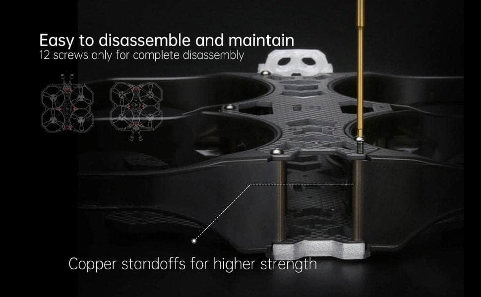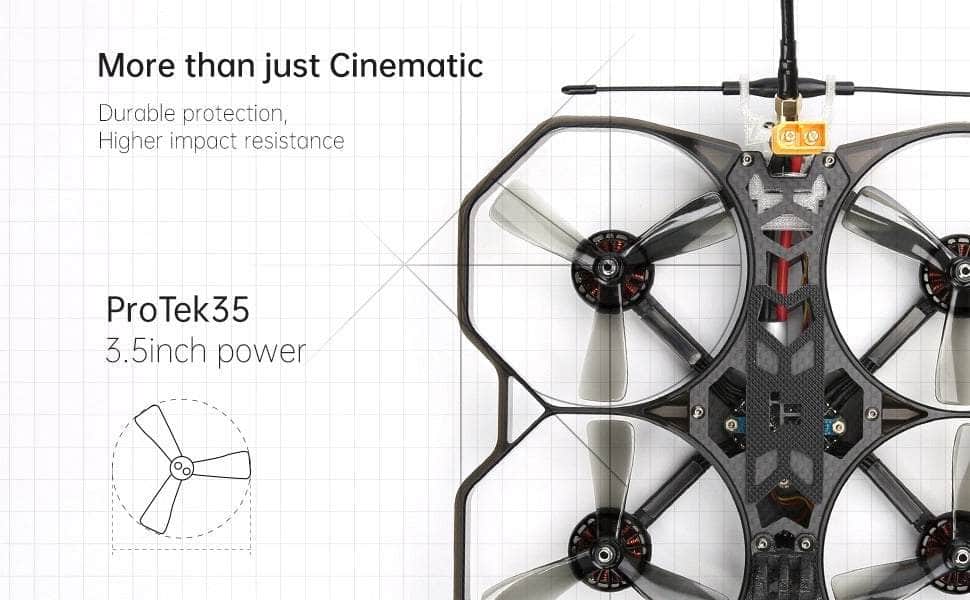 After our very popular 3-inch Cinematic EVA bumper BumbleBee and Green Hornet CineWhoop series, we were trying to increase performance and reduce weight for an even better and longer flight experience for a wide variety of use.