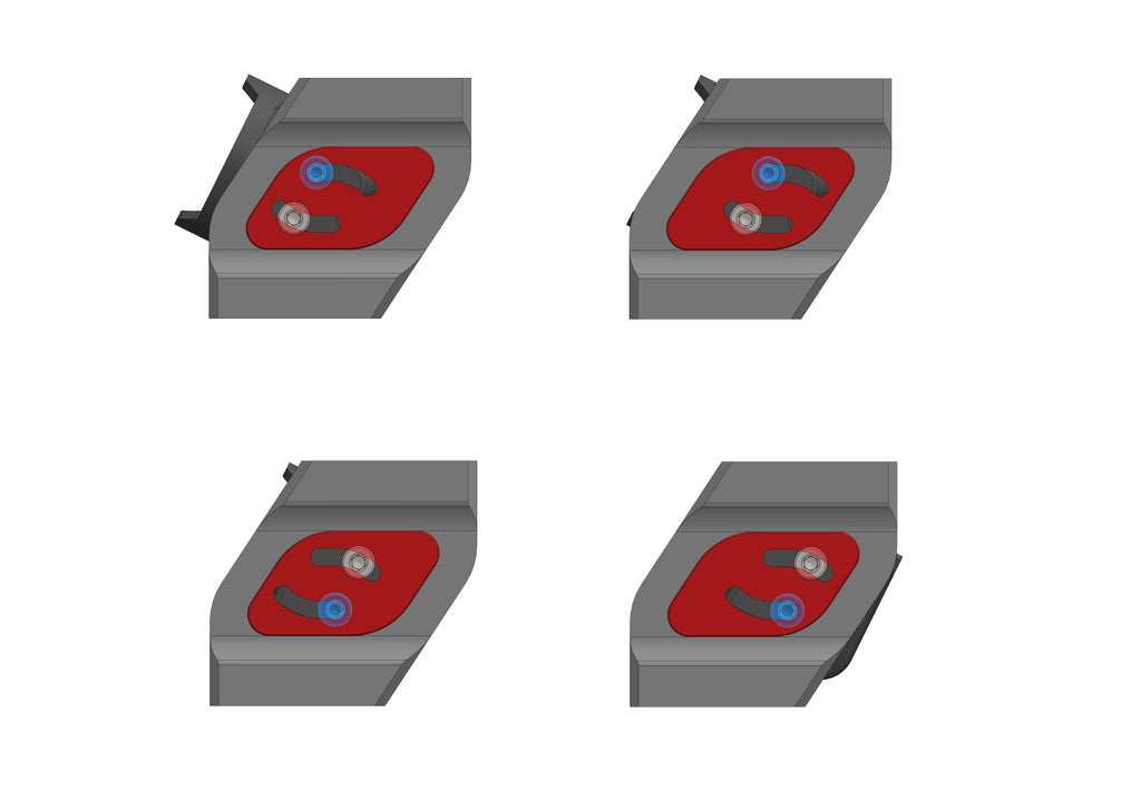 - By rotating the TPU inserts 180 degrees, as well as alternating between using the upper or lower bolt as the pivot point, the EVO camera mount has 4 possible mounting positions each 2mm apart.