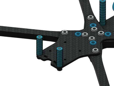 4x | 28mm Aluminum standoff. | 1x | 2.5mm Top-plate. |