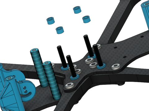 Use stack spacer prints if required to add some clearance so your ESC sits clear of the press nuts and carbon.