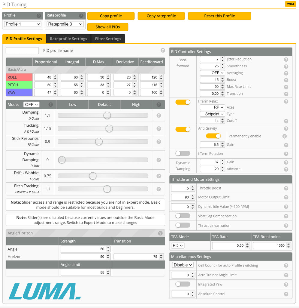 DISCLAIMER: LumaQuad does not hold responsibility or liability for any mechanical damage to your personal setup - this tune has been tested and verified on multiple setups to ensure that it is safe for customers.