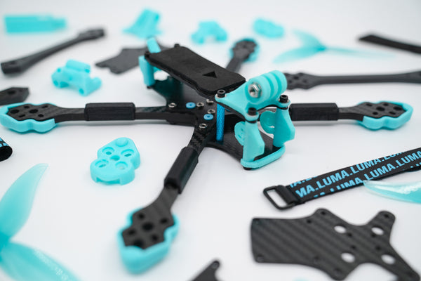 Take your drone filming to the next level with the Luma 55 freestyle frame kit. Offering superior performance and durability, it allows you to push the boundaries of traditional quadcopters and capture stunning visuals like never before. 5.5' provides extra thrust and performance beyond what a standard 5' can offer, to accommodate the heavier GoPro cameras we now love and use. The Luma 55 strikes a perfect balance between the agility of a 5-inch freestyle drone and the planted feel of a 6-inch cinematic cruiser, creating a harmonious blend of speed and stability perfect for cinematic work. With the Luma 55, you can effortlessly track and follow fast-moving subjects such as drift cars, boats, and motorbikes, capturing stunning footage with precision and ease.