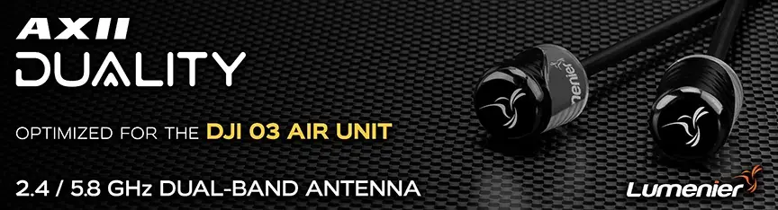 The Lumenier AXII Duality HD is a dual-band, double antenna specifically designed for the DJI O3 Air Unit. (4 antennas in 1!) Duality provides high-quality 2.4/5.8 GHz reception in a compact and lightweight form factor. That's right, this antenna will work on both 2.4GHz and 5.8GHz frequencies!