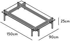 La estructura compleja de ensambles a media madera reciben al cristal sujetándolo con firmeza. La mesa, de solo 25cm de altura, es una pieza que evita ser invasiva integrándose al espacio.