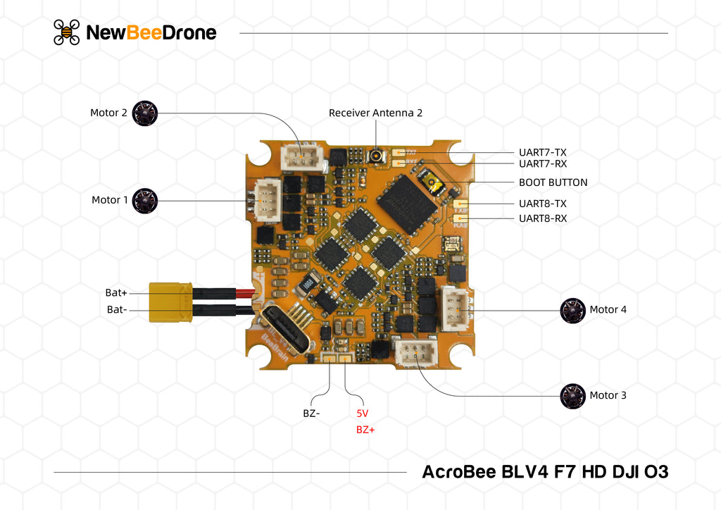 This flight controller is specifically designed as a replacement part for the AcroBee75 HD O3 BNF and is not intended for use in DIY projects. Its compatibility with third-party components cannot be guaranteed, and as such, we regret to inform you that we are unable to provide technical support for any issues that arise from its use with non-standard parts. Your understanding in this matter is highly appreciated.