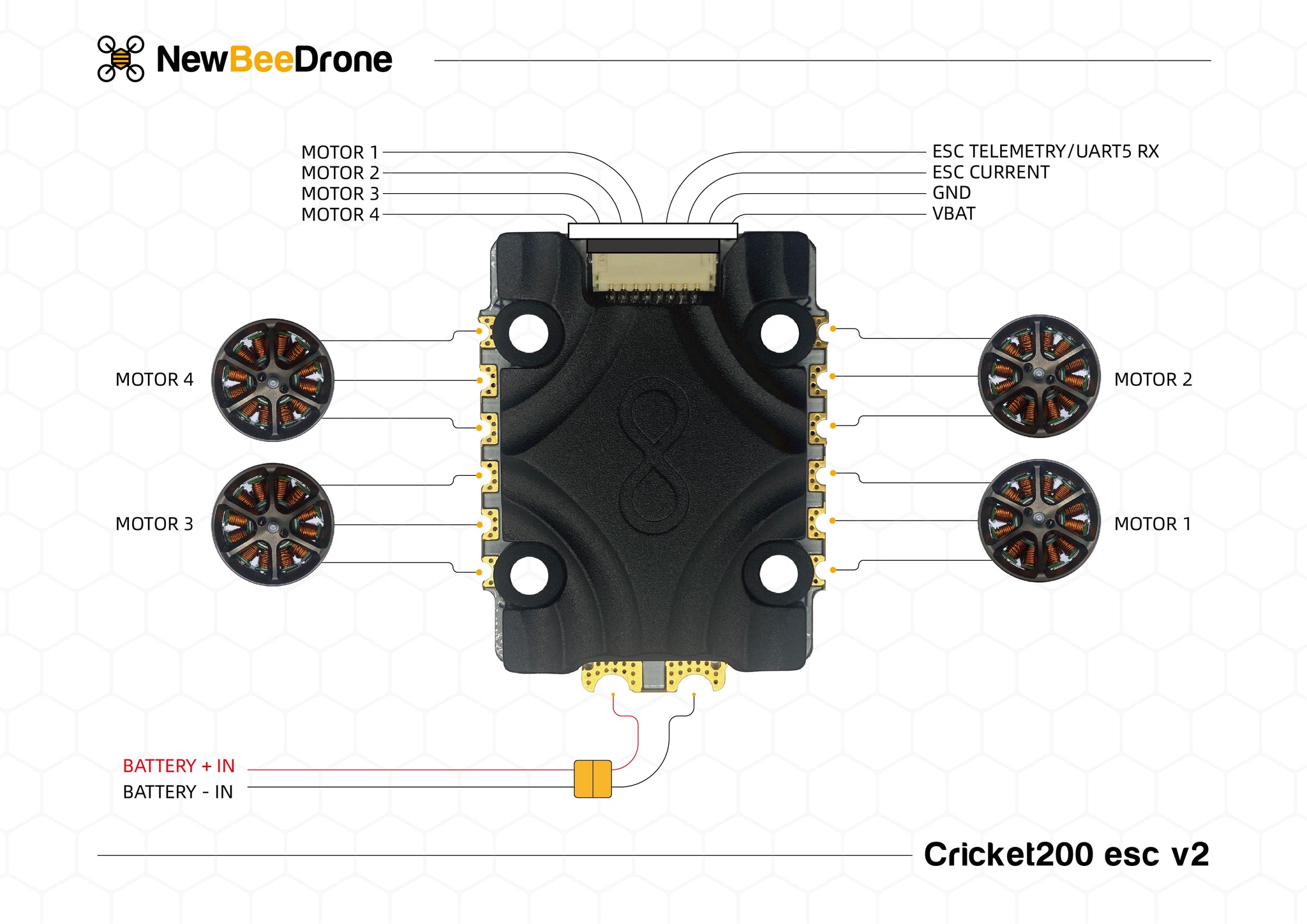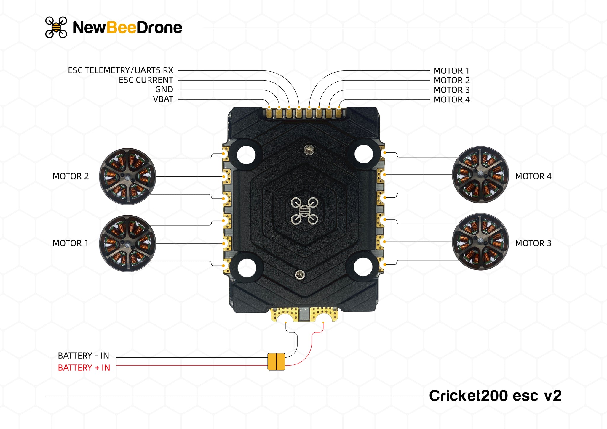 - 1x Cricket200 v2 4 in 1 ESC BLHeli32 55A