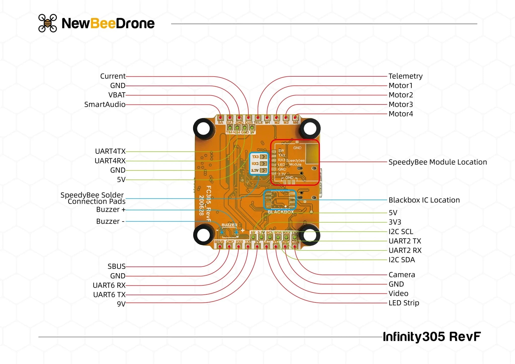 - 1x NewBeeDrone Infinity305 F4 3-6S Flight Controller