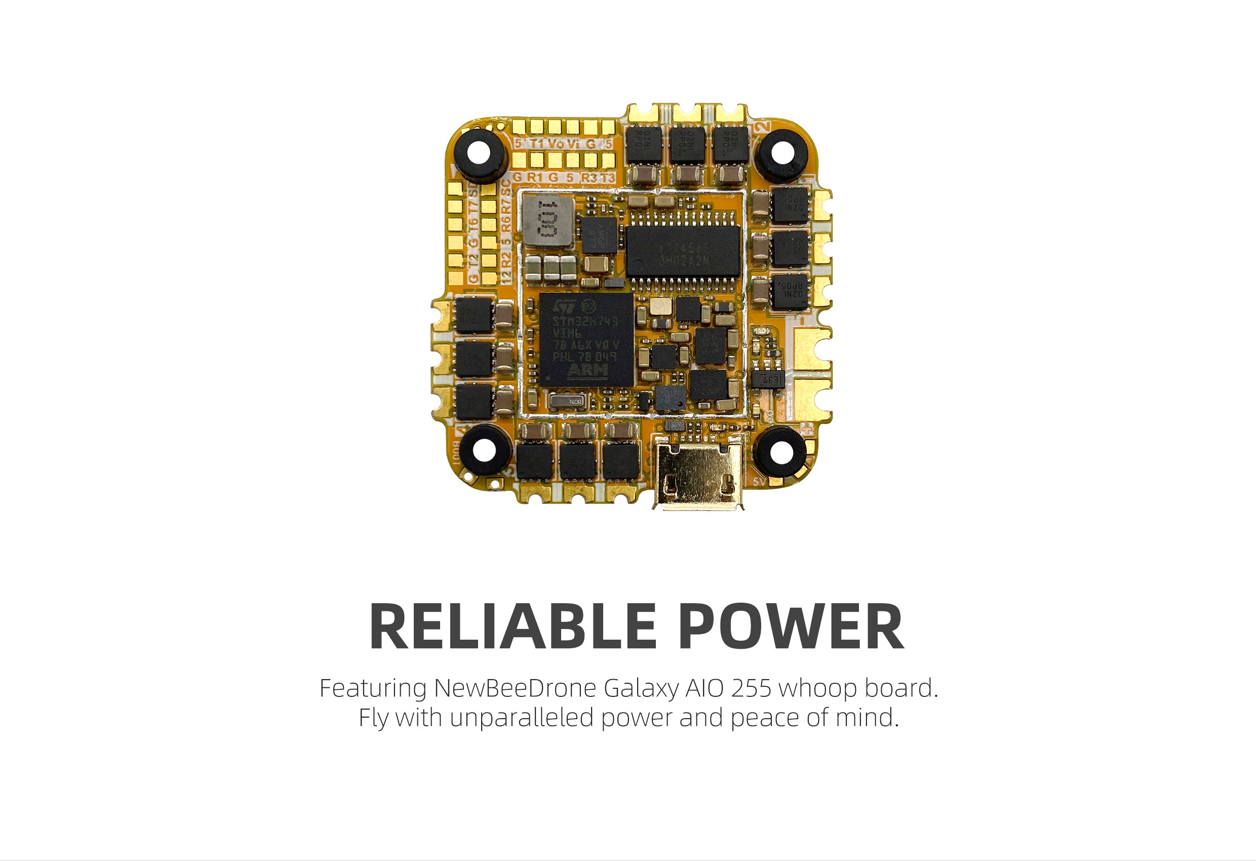 The NewBeeDrone Galaxy AIO 255, the ultimate all-in-one flight controller. Powered by an STM32H743VIH6 MCU and 2xBMI270 gyros, it delivers exceptional performance and stability.